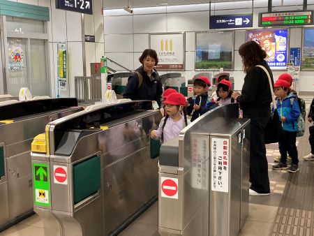 一人ひとり自分で切符を入れたよ!ドキドキ…!